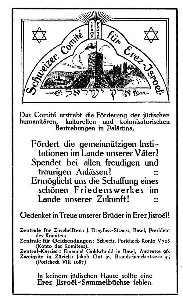 Vorstellung des Schweizerischen Comité's für Erez-Jsroel