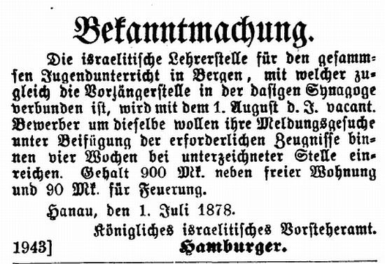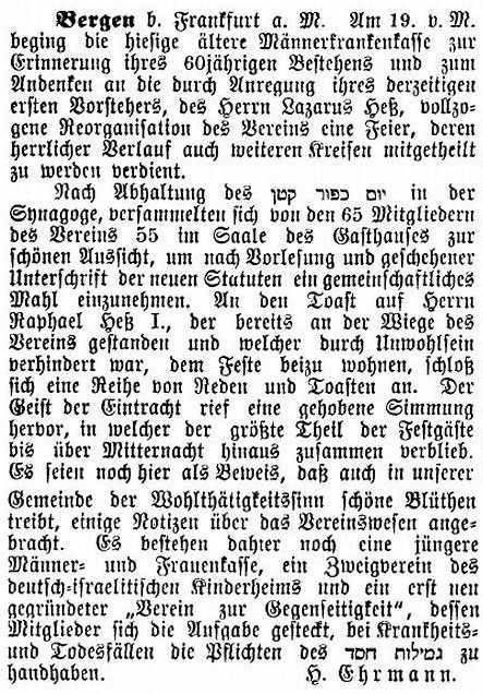 zeitweise "Jüdische Gemeinde Bergen-Fechenheim".