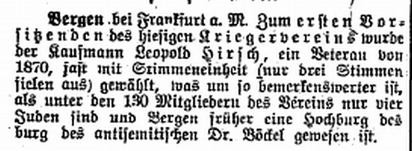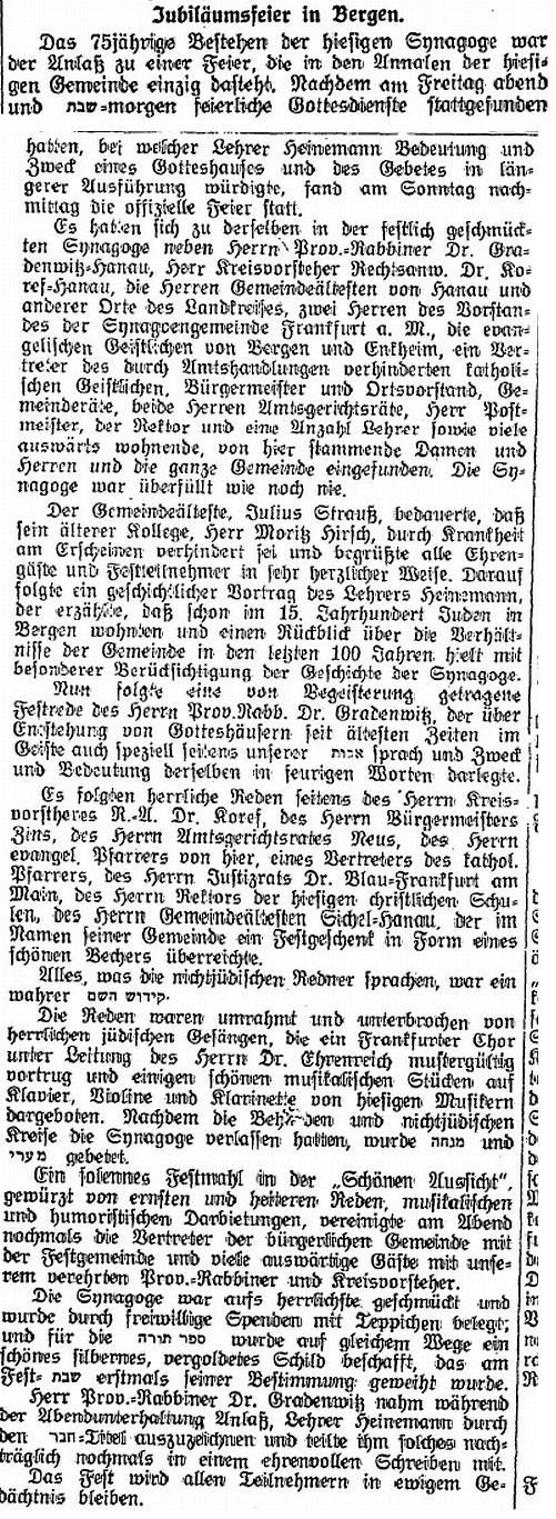 lebten in Bergen je 85, in Bischofsheim zehn jüdische Einwohner. Im