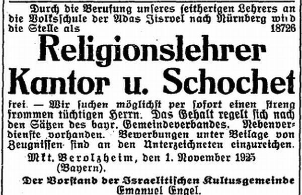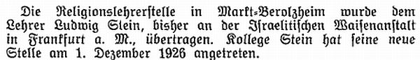 Berolzheim verließ und Lehrer in Nürnberg wurde (an der Volksschule der Adas