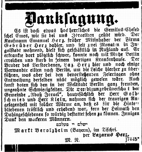 sein Sohn Max ist 1868 in Berolzheim geboren) und der Sohn von Jakob Rosenbaum: Hermann Rosenbaum