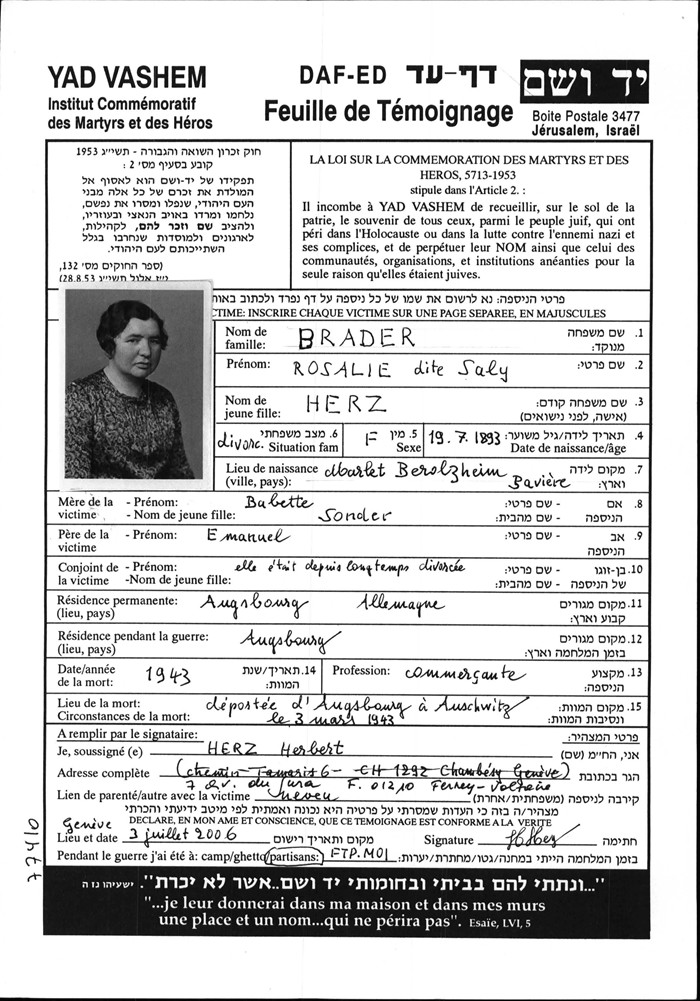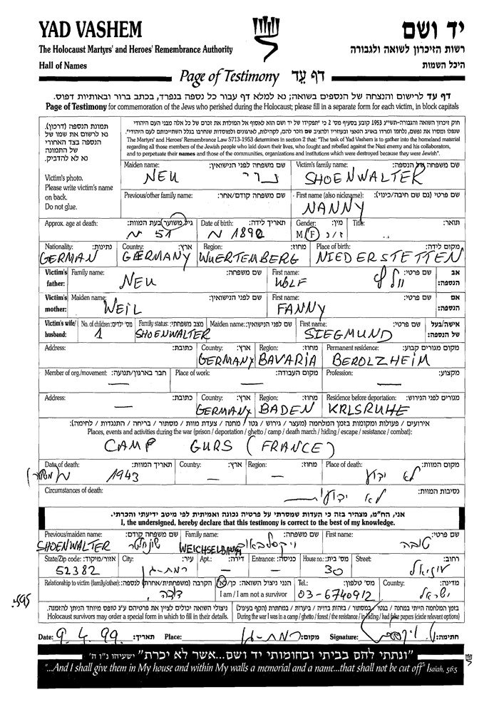 in Berolzheim, gef. 10.7.1916). Ihre Namen stehen auf dem