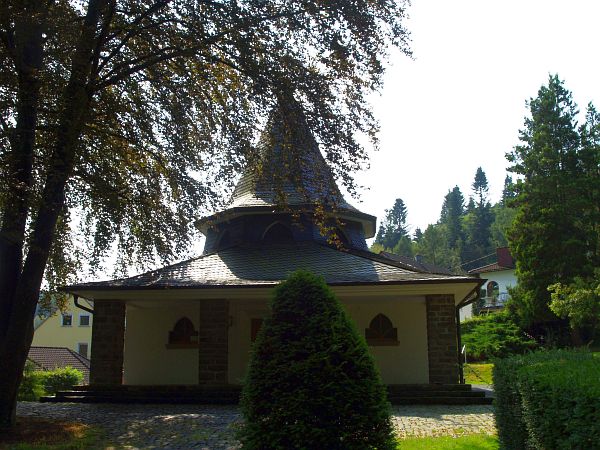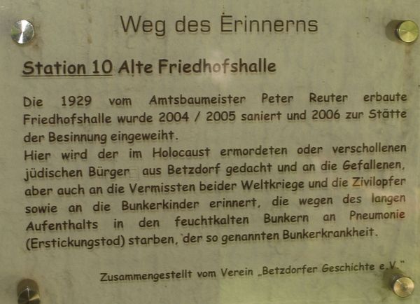 "Die 1929 vom Amtsbaumeister Peter Reuter erbaute Friedhofshalle wurde 2004/2005