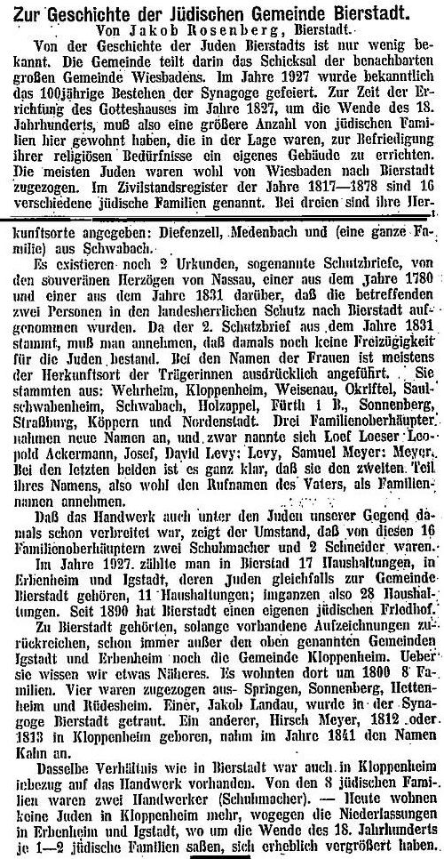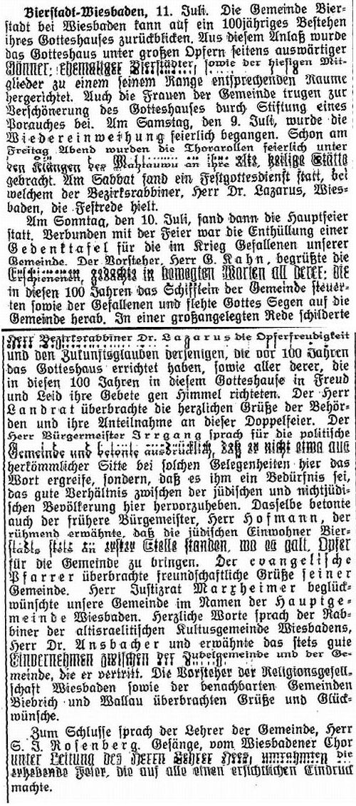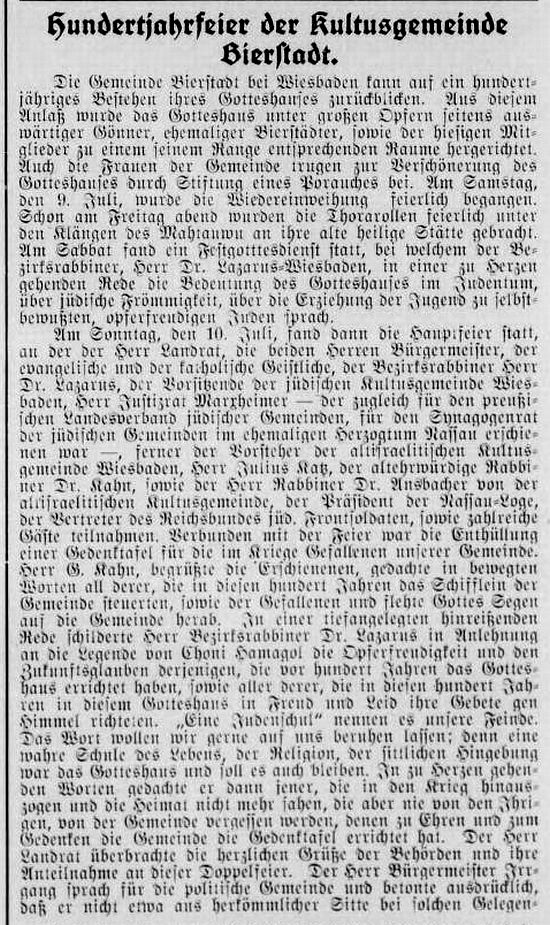 erwähnte, dass die jüdischen Einwohner Bierstadts stets an erster Stelle