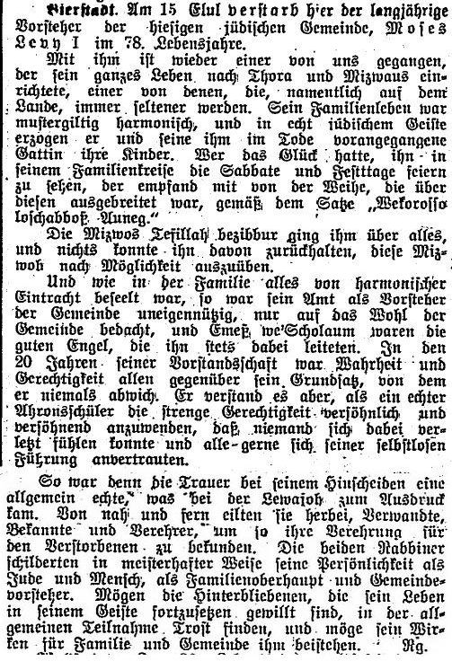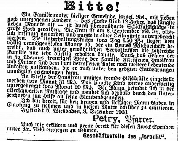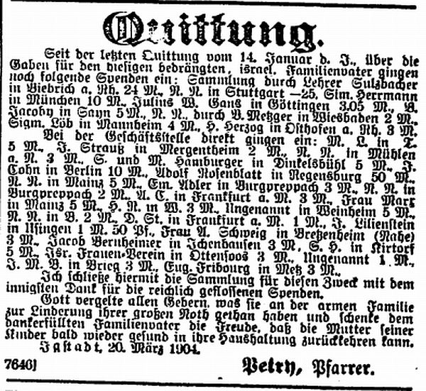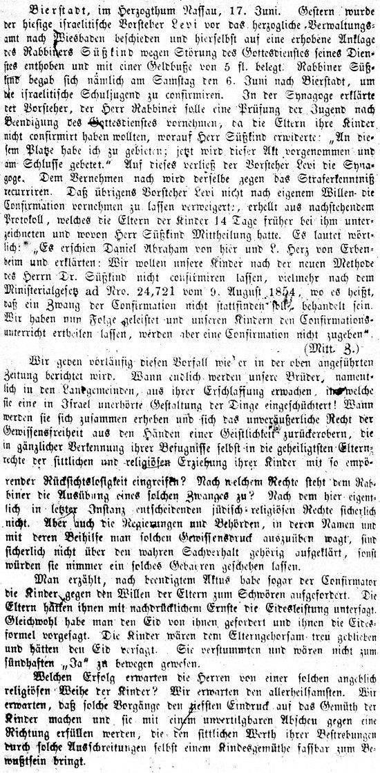 Ähnlicher Bericht wie in der Zeitschrift "Der Israelit"