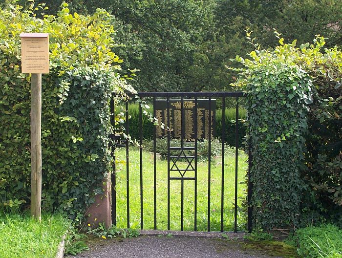 dem Eingang zum Friedhof: der Gurs-Gedenkstein; auf der Vorder- und