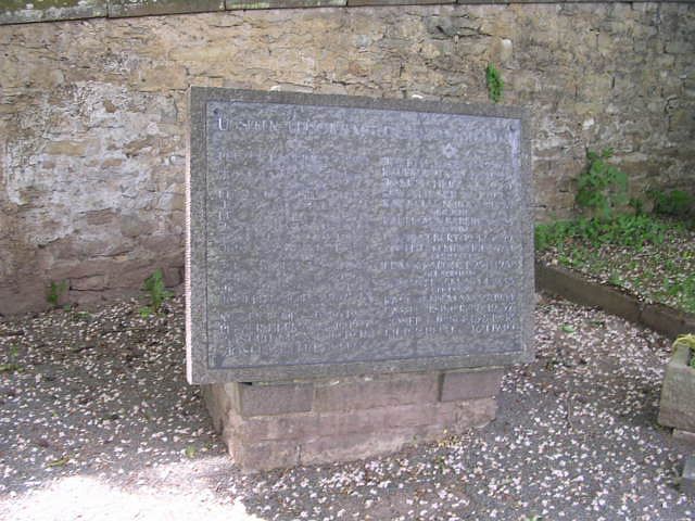 sich auf dem Friedhof eine Gedenktafel mit 30 Namen.