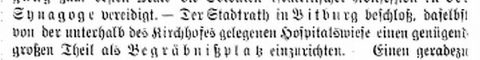 des Kirchhofes gelegenen Hospitalwiese einen genügend großen Teil als Begräbnisplatz