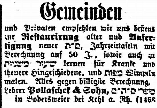 Einwohnern), waren die Gemeindevorsteher Leopold Kaufmann, Emanuel Merklinger