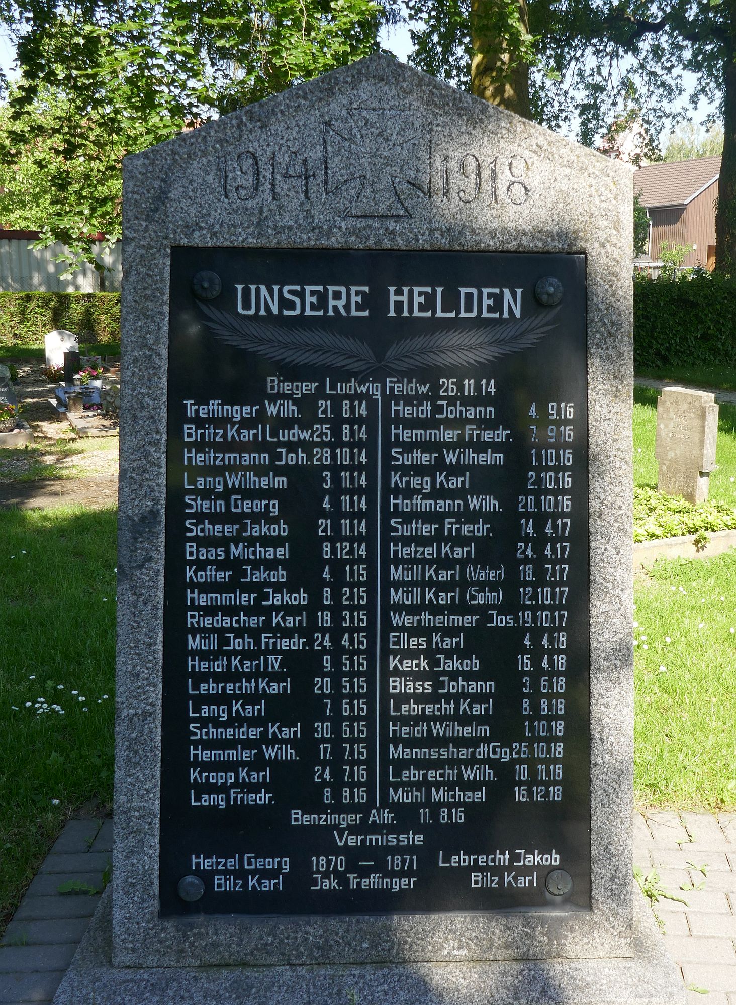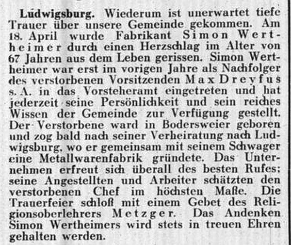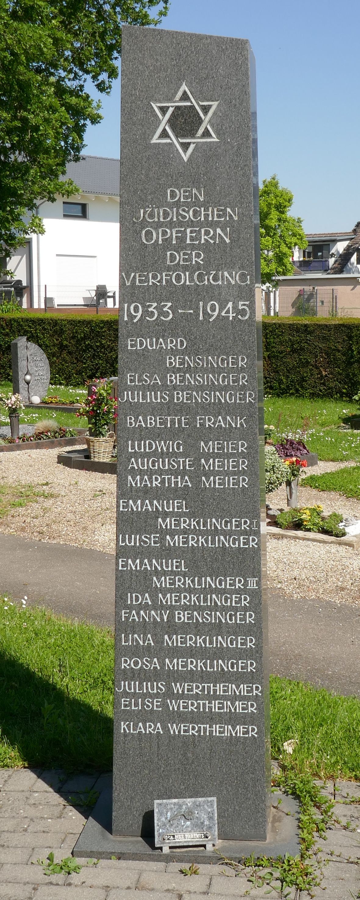 Benzinger (Bensinger) und Joseph Wertheimer; dann das Gefallenendenkmal des