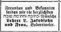 1892/1894 H. Reis, um 1895/1902 Lehrer L. Jakobsohn, um 1904 Lehrer Rothschild,
