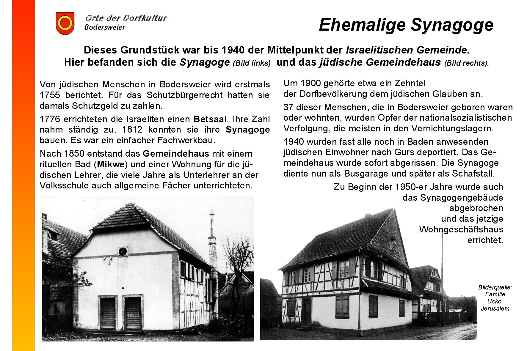 weeks after being severely beaten. Fifteen Jews left Bodersweier until 1940.