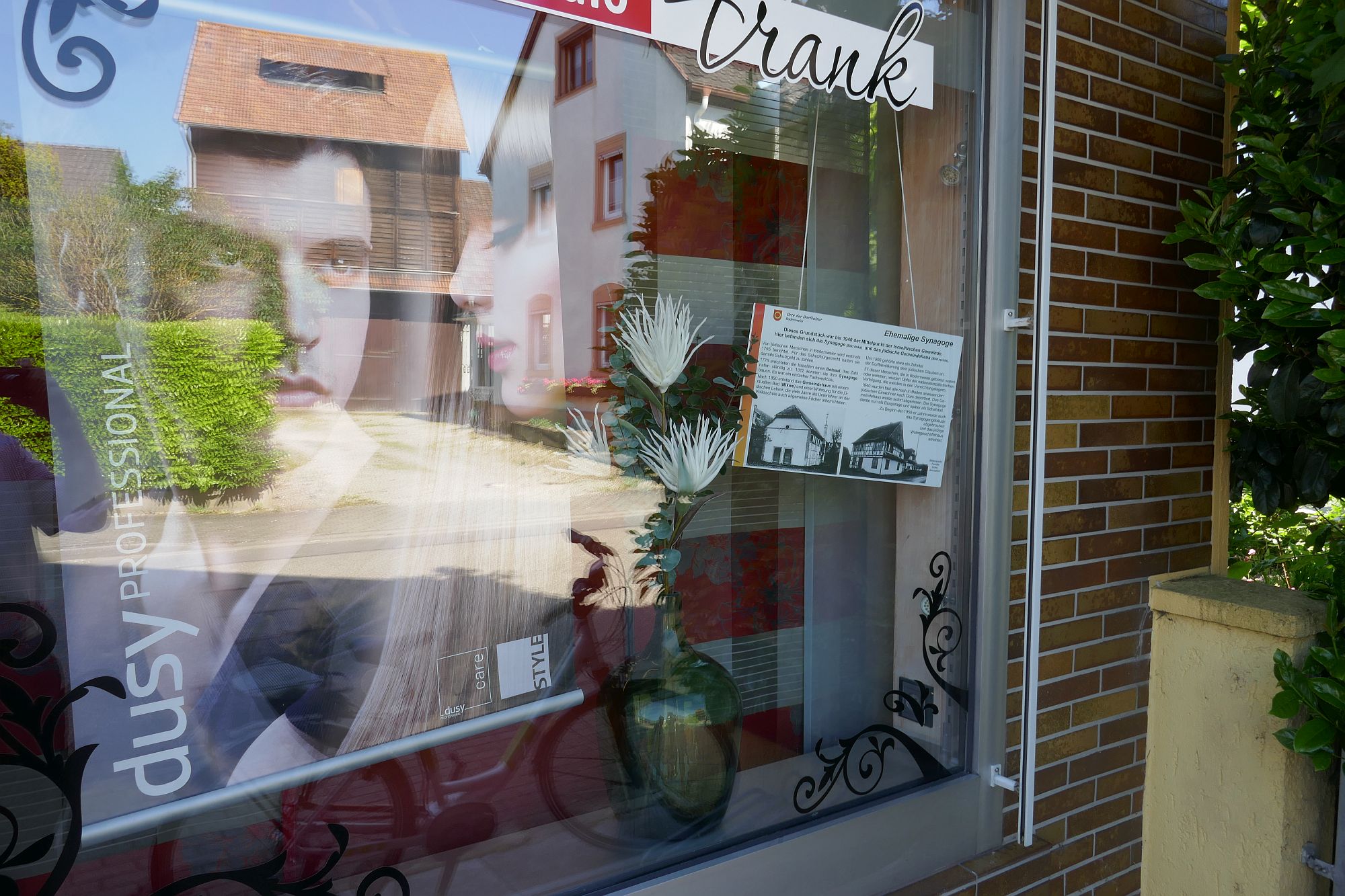 erinnert eine einfache Hinweistafel an die ehemalige Synagoge.