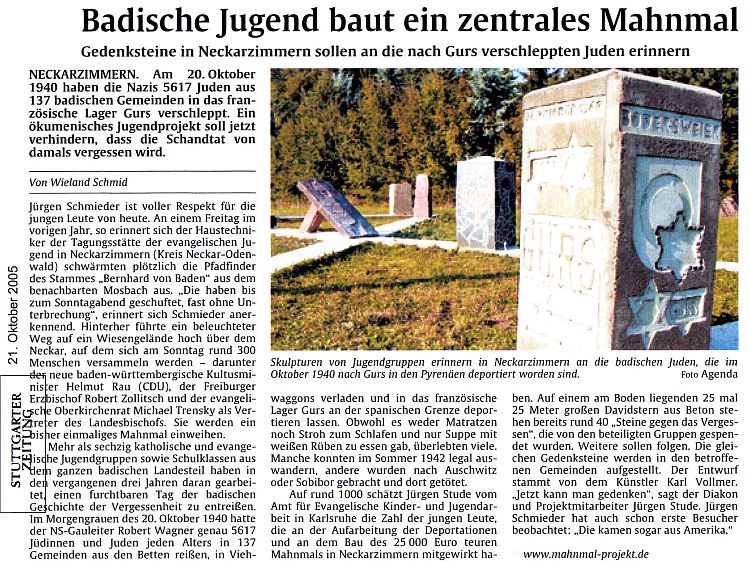 verschleppt. Die letzten 15 jüdischen Einwohner wurden am 22. Oktober 1940 nach