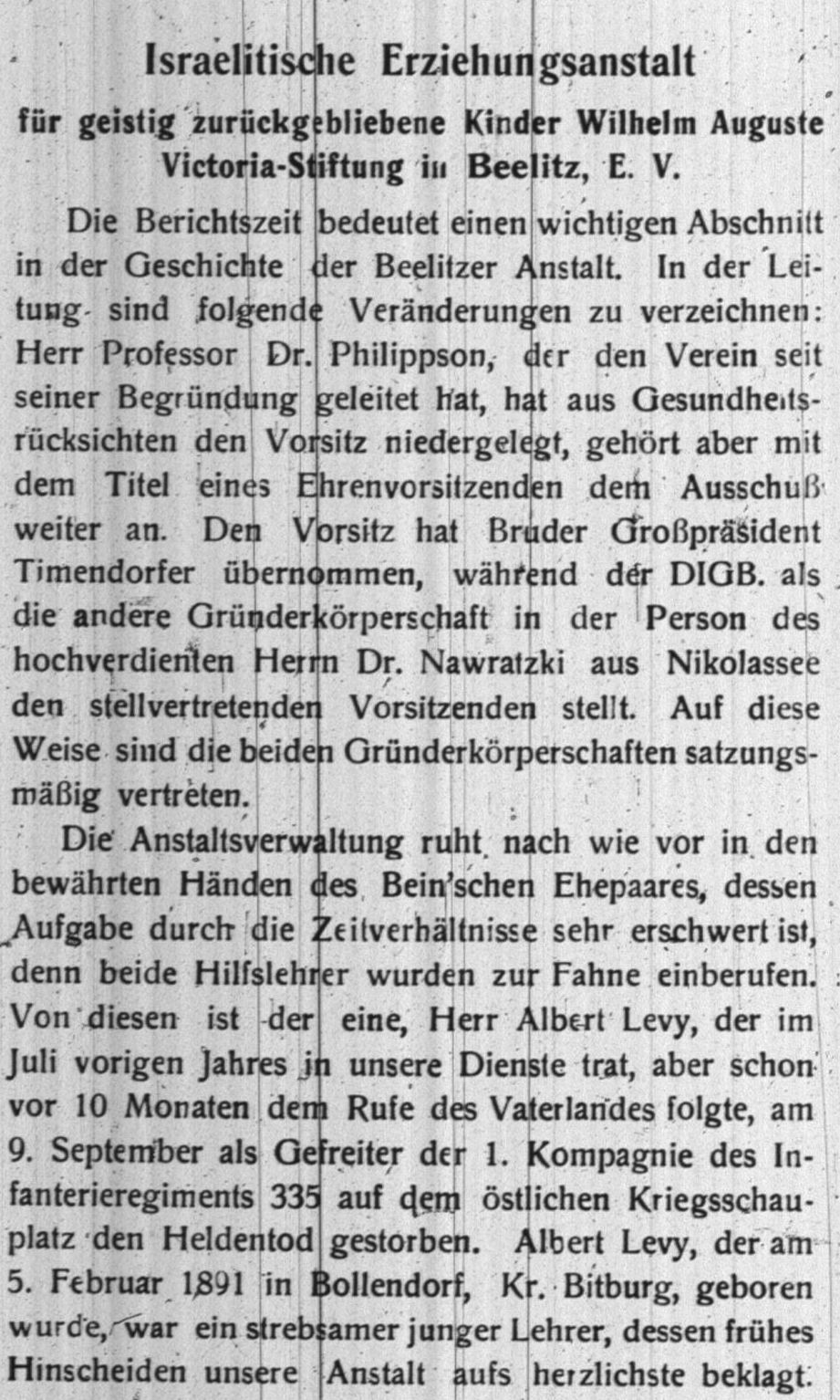 Bollendorf, gef. 19.9.1915). Außerdem ist Albert Levy (geb. 5. Februar 1891 in