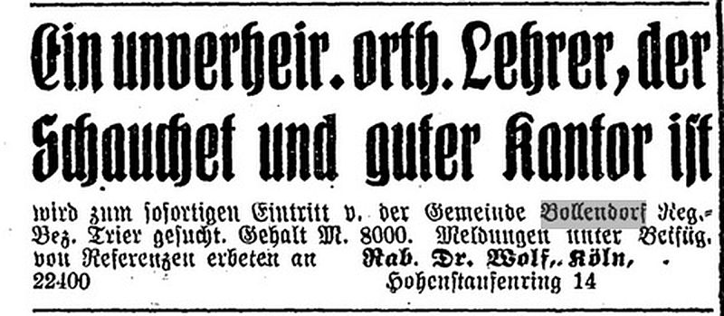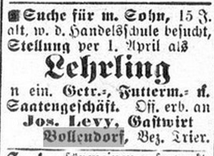 In dem an der Grenze zu Luxemburg liegenden Bollendorf bestand eine jüdische