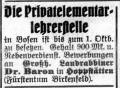 Lehrer Hartmann. 1906 unterhielt die jüdische Gemeinde eine private
