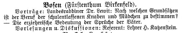 Kinder (in Bosen und Gonnesweiler) erteilte Landrabbiner Dr. Lewin (Hoppstädten).