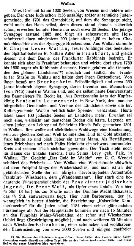 "Gemeindeblatt der Israelitischen Gemeinde Frankfurt" im Juni 1936: "Wallau. Altes Dorf mit kaum 1000 Seelen, von Wiesen und Feldern