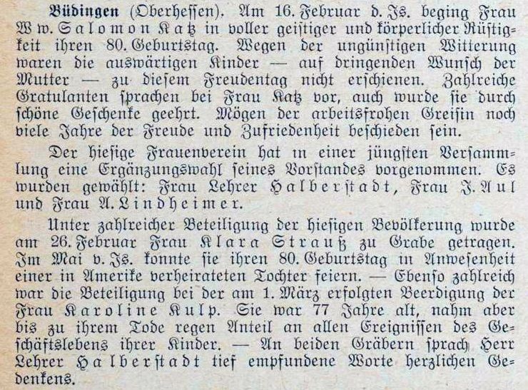 von Büdingen) lebenden jüdischen Personen gehörten zur Gemeinde in Büdingen