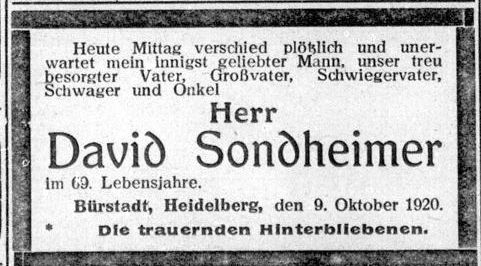 Sinsheimer, D. Sondheimer; 1929 Sal. Sinsheimer und Emanuel Nordheimer.