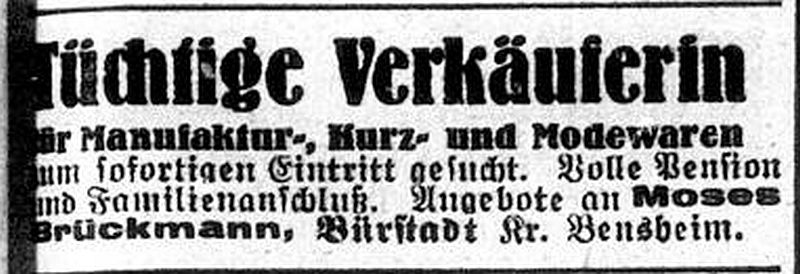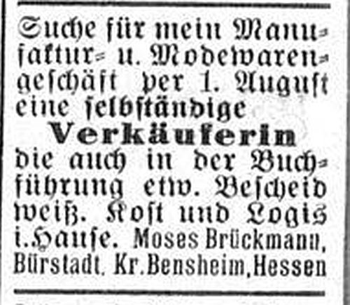 sein Schwiegersohn Albert Meyer übernahm. Moses Brückmann hatte ein Schuh-,