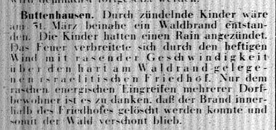 Württembergs" vom 15. April 1930: "Buttenhausen. Durch