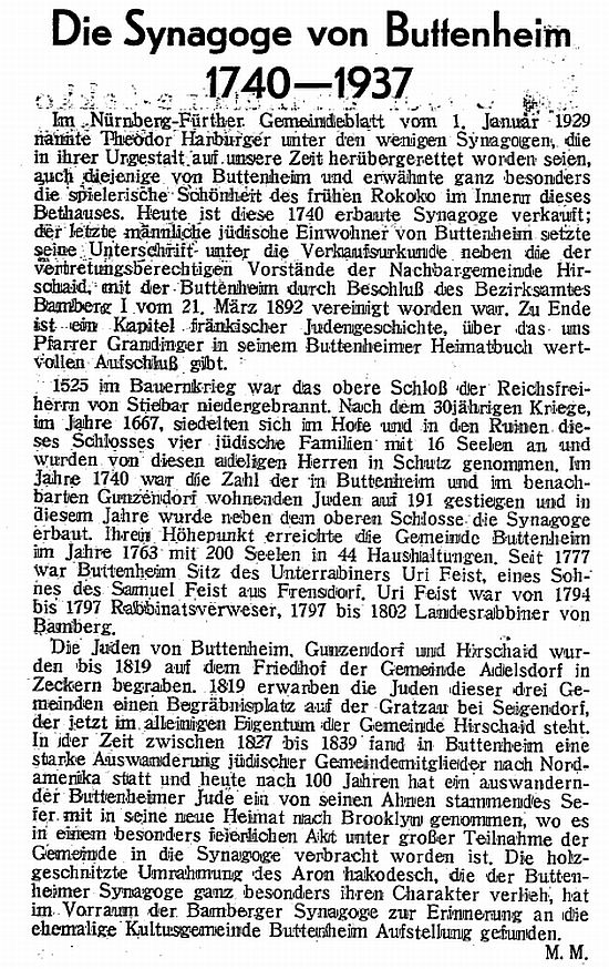 Kultusgemeinde Buttenheim Aufstellung gefunden. M.M." |