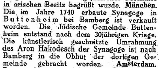 Buttenheimer Synagoge ganz besonders ihren Charakter verlieh, hat im
