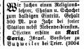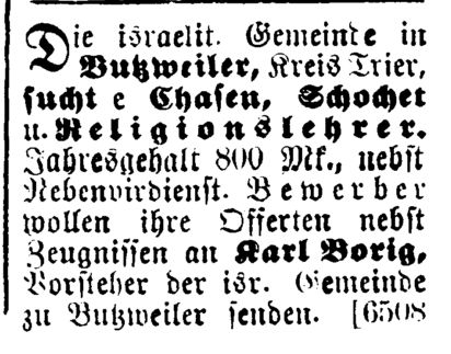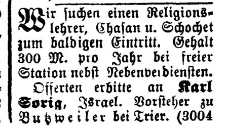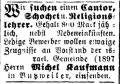 Religionslehrer angestellt, der zugleich als Vorbeter und Schochet tätig war (s.u. Ausschreibungen