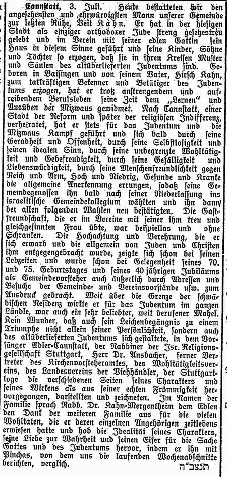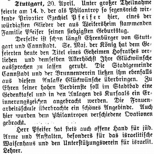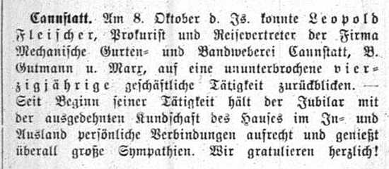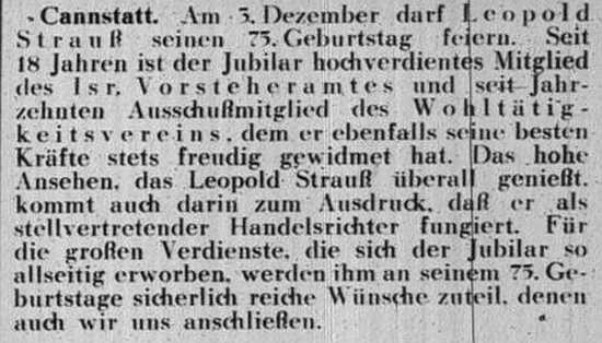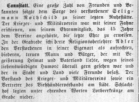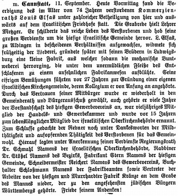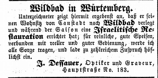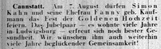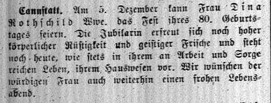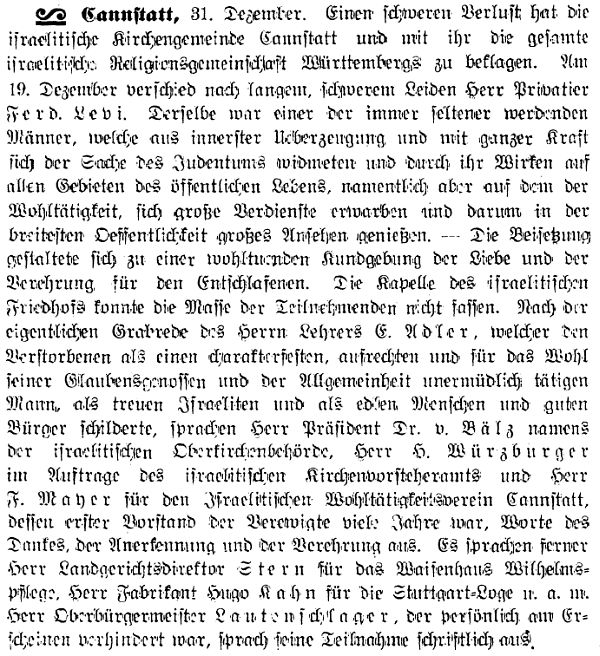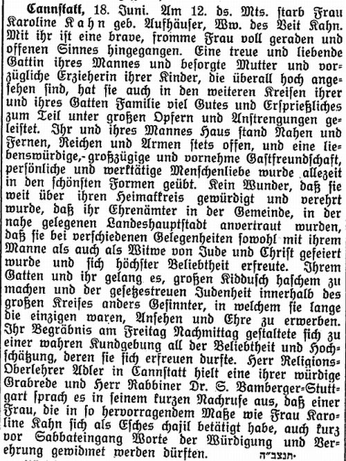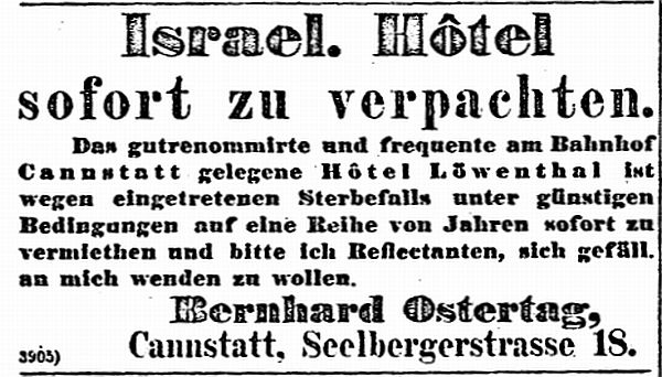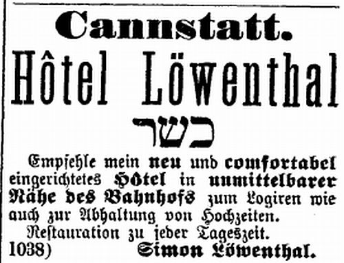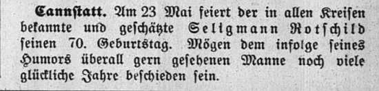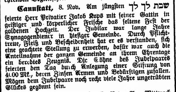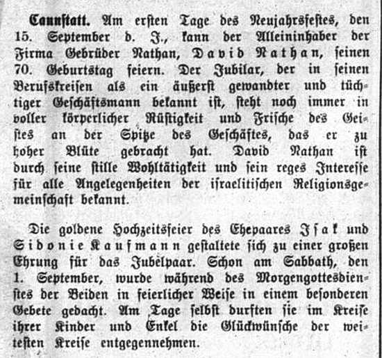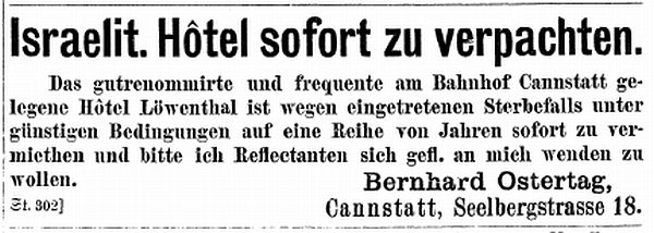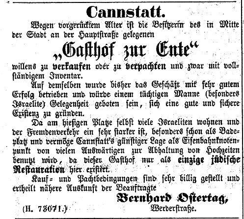 der "Allgemeinen Zeitung des Judentums" vom 30. September 1898: "Cannstatt,