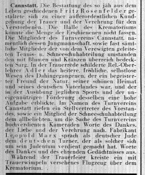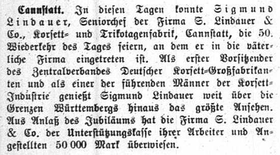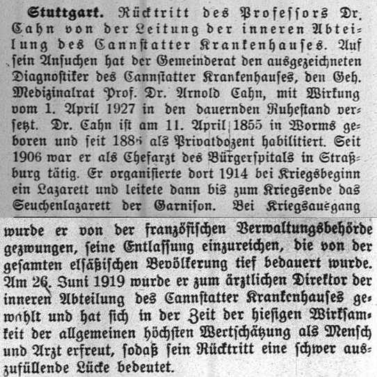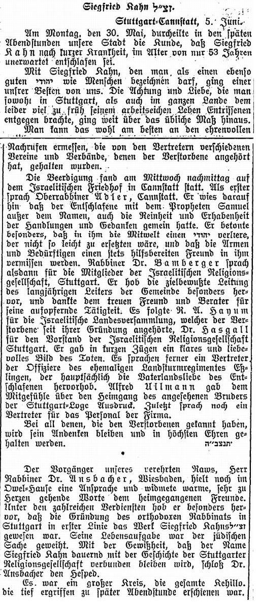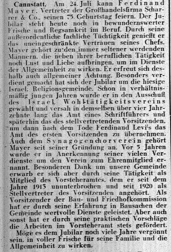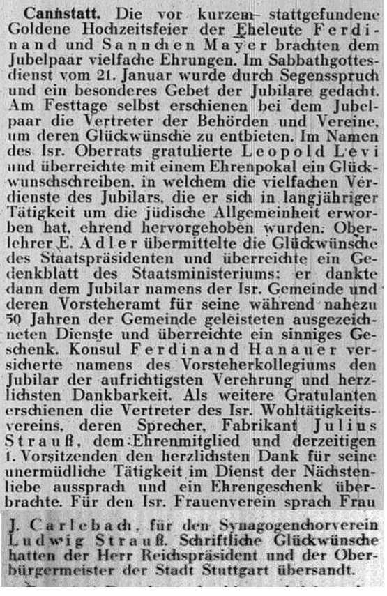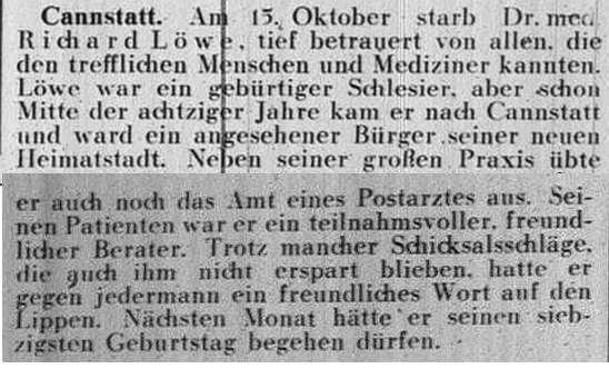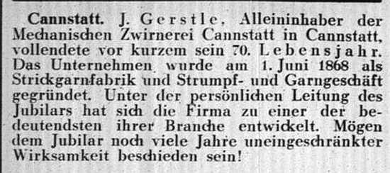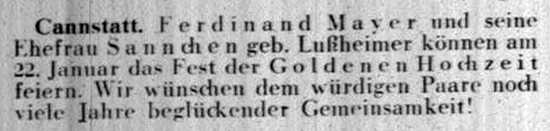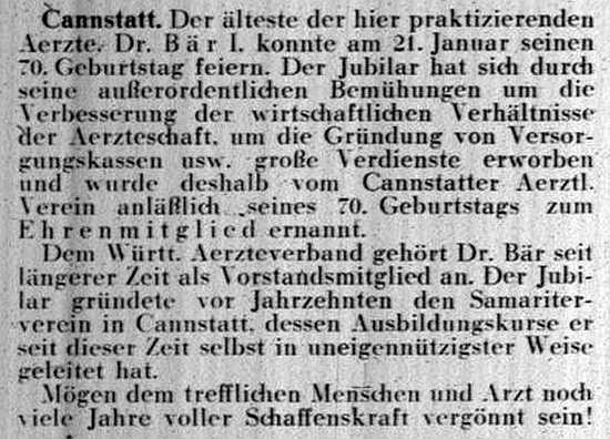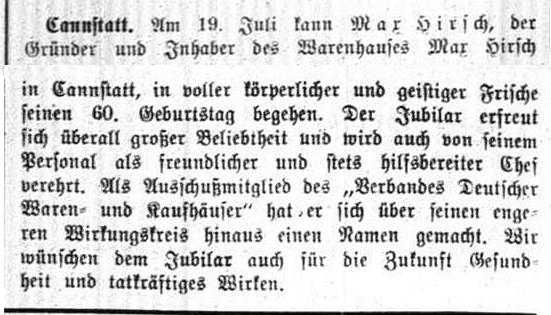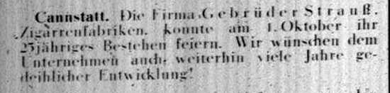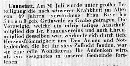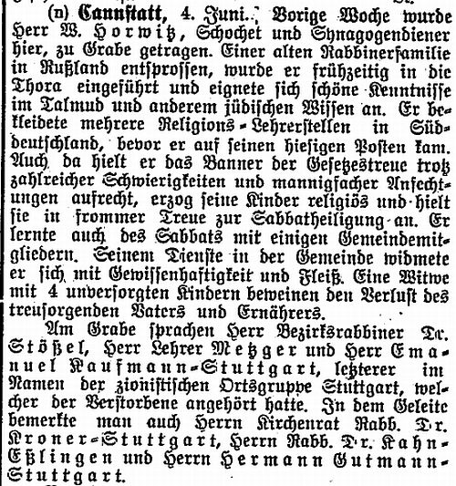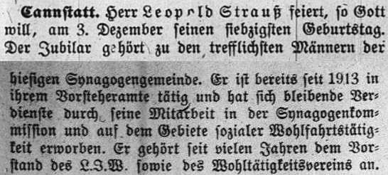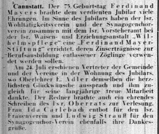 der "Allgemeinen Zeitung des Judentums" vom 30. September 1898: "Cannstatt,