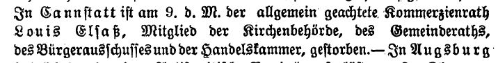 Cannstatt ist am 9. dieses Monats der allgemein geachtete Kommerzienrat
