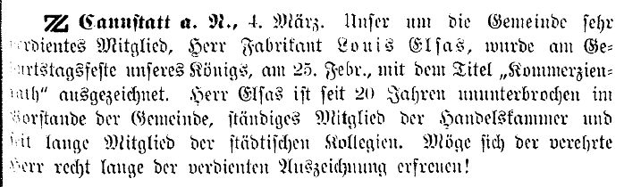 25. Februar, mit dem Titel ‚Kommerzienrat’ ausgezeichnet. Herr Elsas