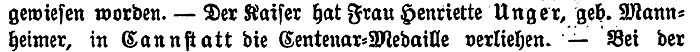 Centenar-Medaille verliehen." |