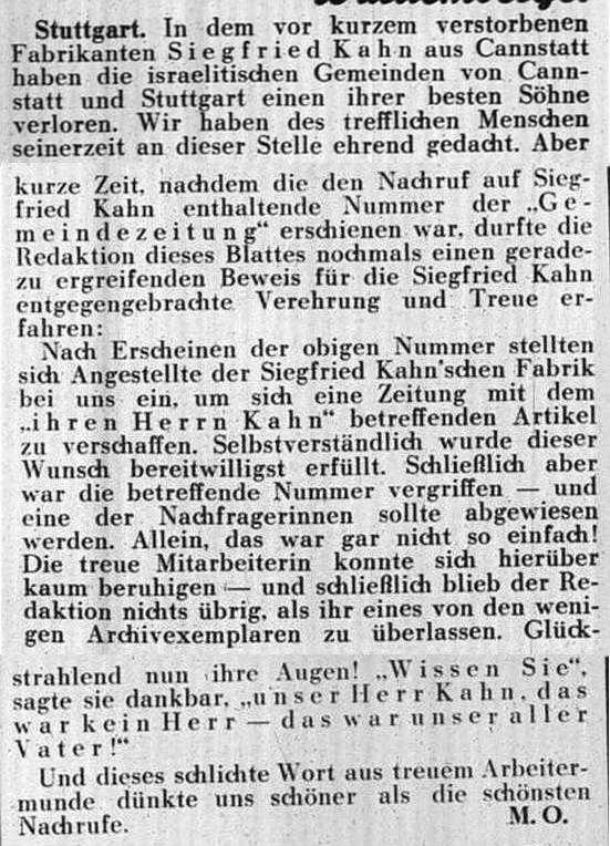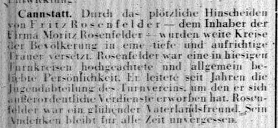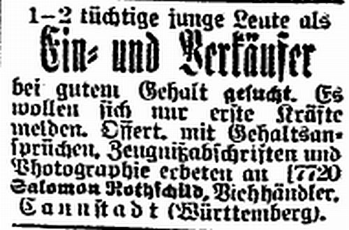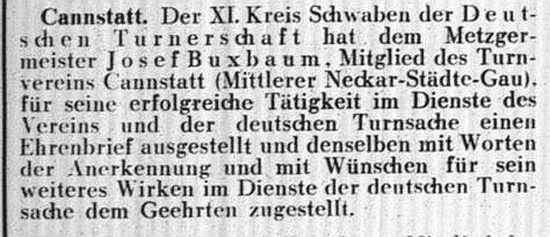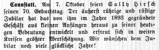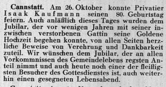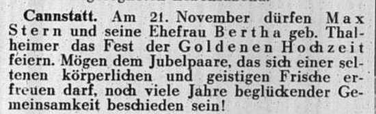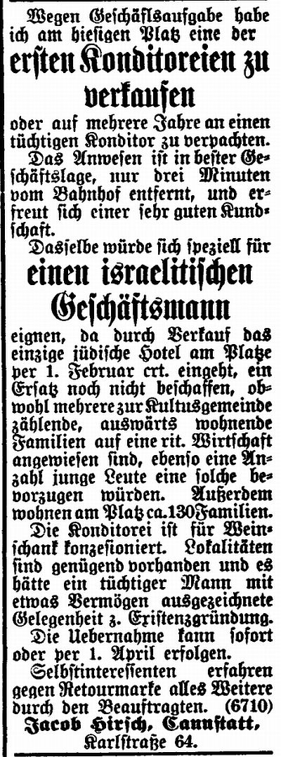 der Zeitschrift "Der Israelit" vom 21. Oktober 1909: Cannstatt, Württemberg.