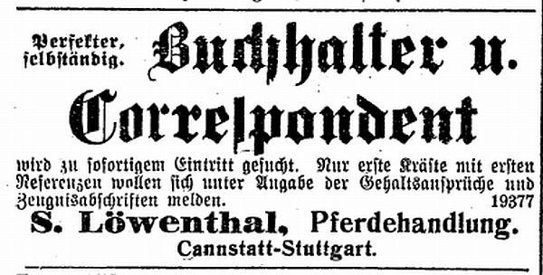 Mitarbeitersuche der Pferdehandlung S. Löwenthal