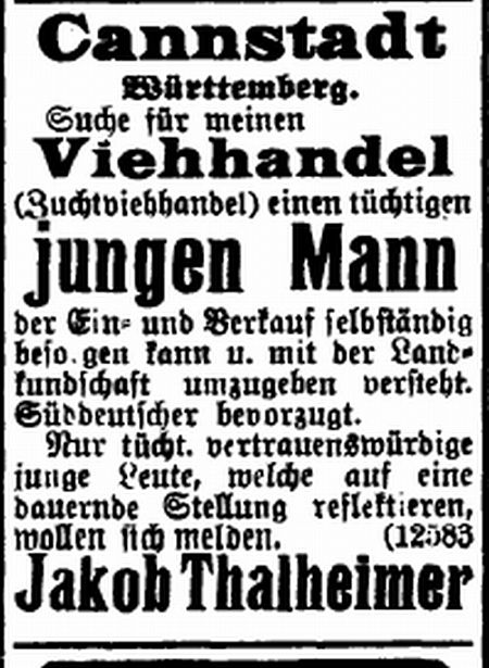 Anzeige der Viehhandlung von Jakob Thalheimer
