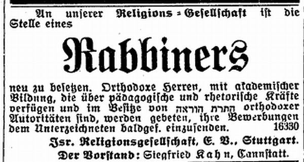 Ausschreibung der Rabbinerstelle der