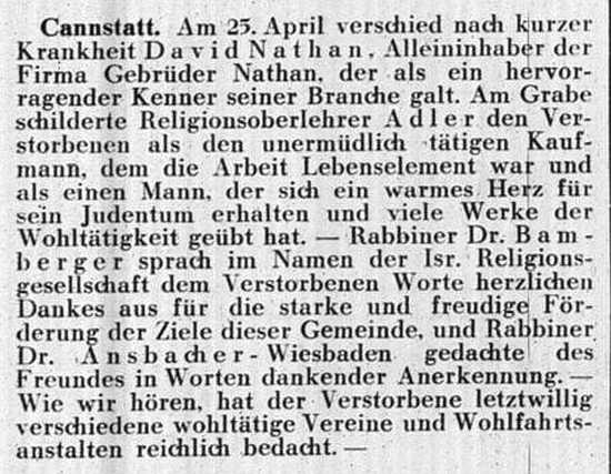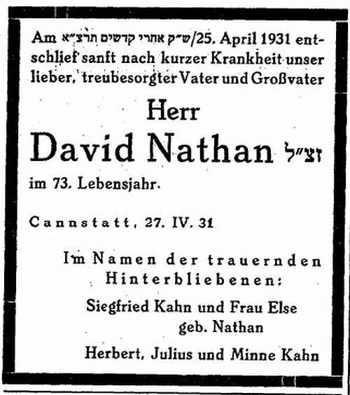 Todesanzeige für David Nathan (1931)