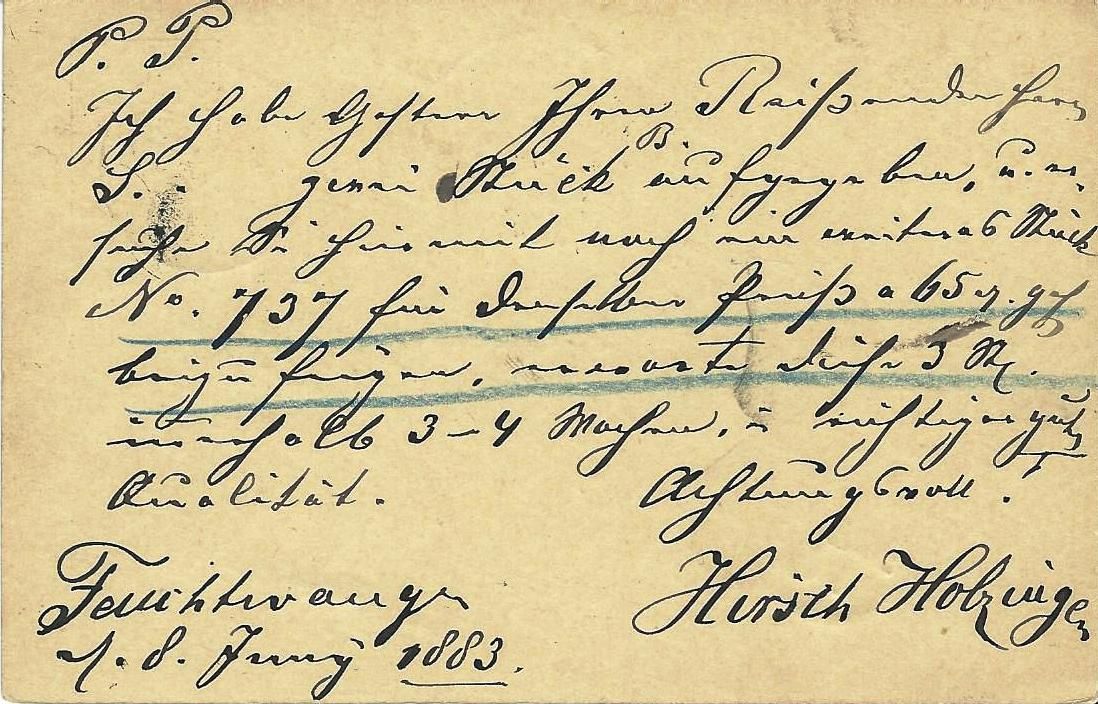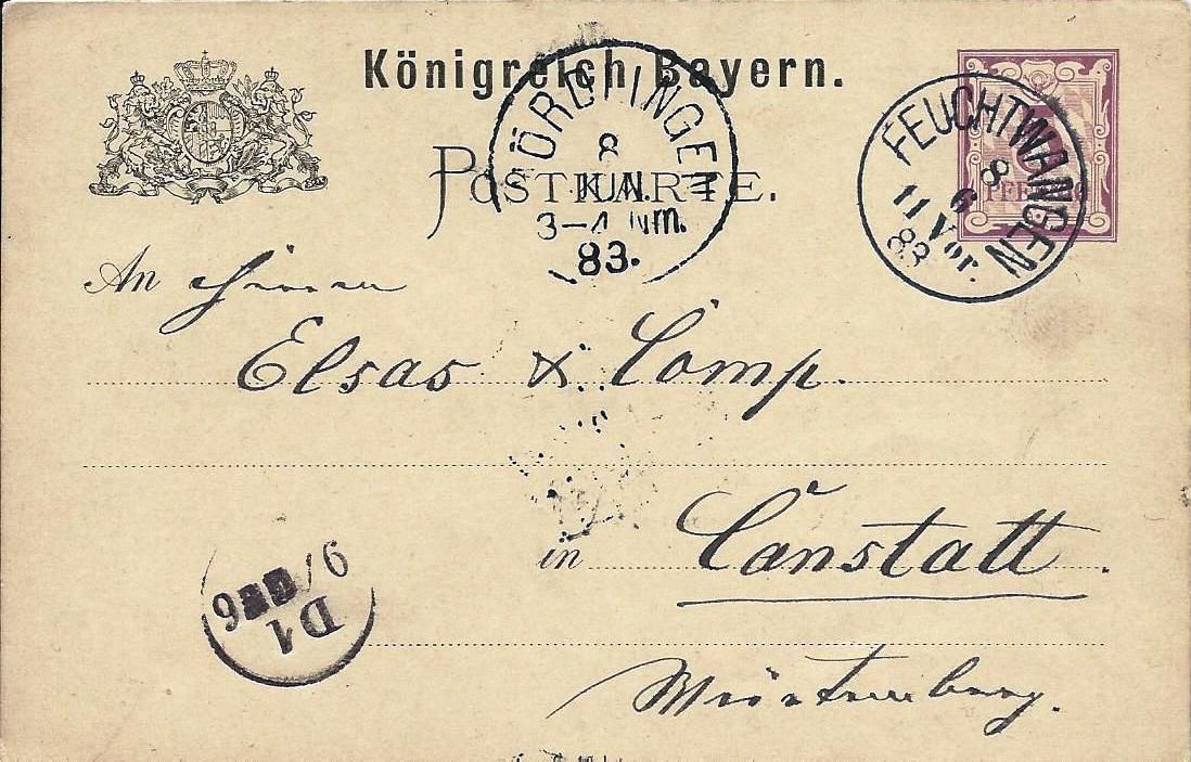 wurde versandt an die Fa. Elsas in Cannstatt am 25. April 1883.