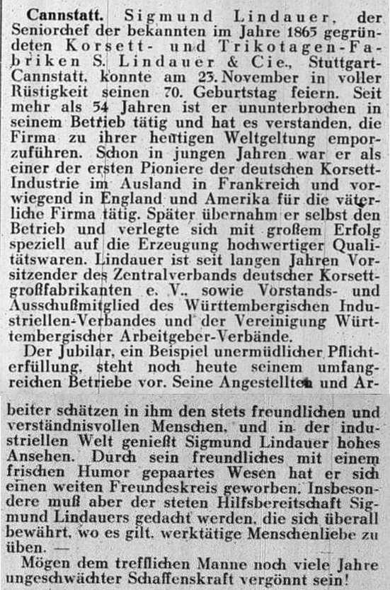 der Zeitschrift "Der Israelit" vom 15. Januar 1920: "Perfekter, selbständiger