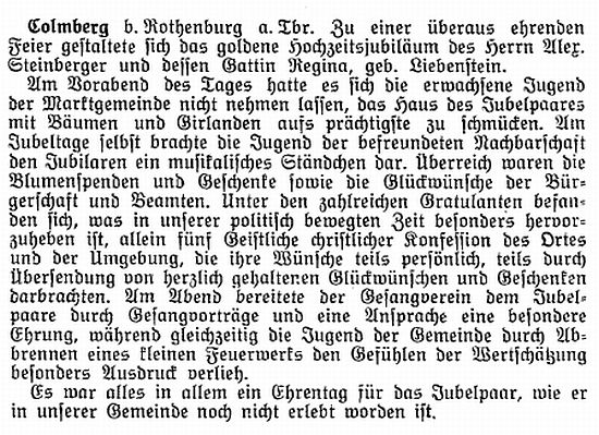 In Colmberg bestand eine jüdische Gemeinde bis 1931.