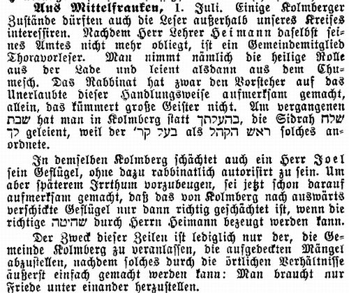 in der Zeitschrift "Der Israelit" vom 18. August 1890: