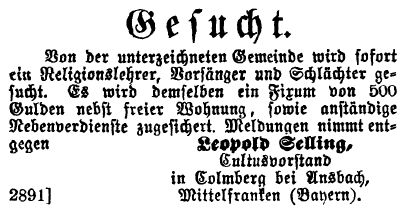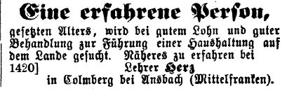 in der Zeitschrift "Der Israelit" vom 15. Dezember 1875: "Gesucht.