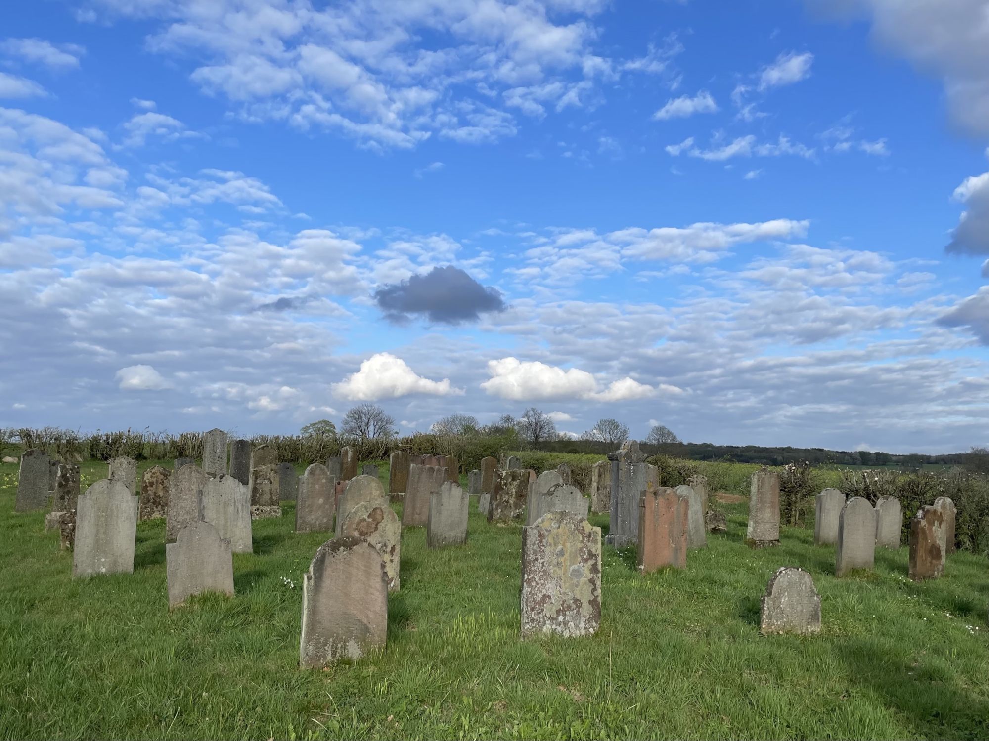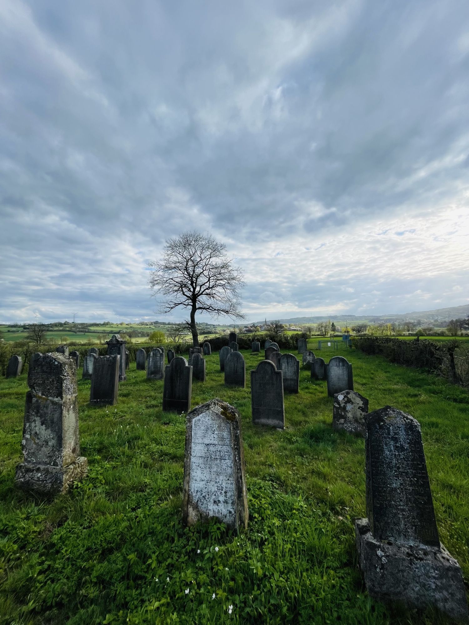 gerichteten Rückseiten der Grabsteine enthalten teilweise deutsche