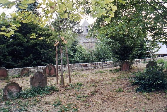 Im hinteren Teil des Friedhofes stehen noch Grabsteine aus dem 187. und 18.