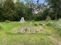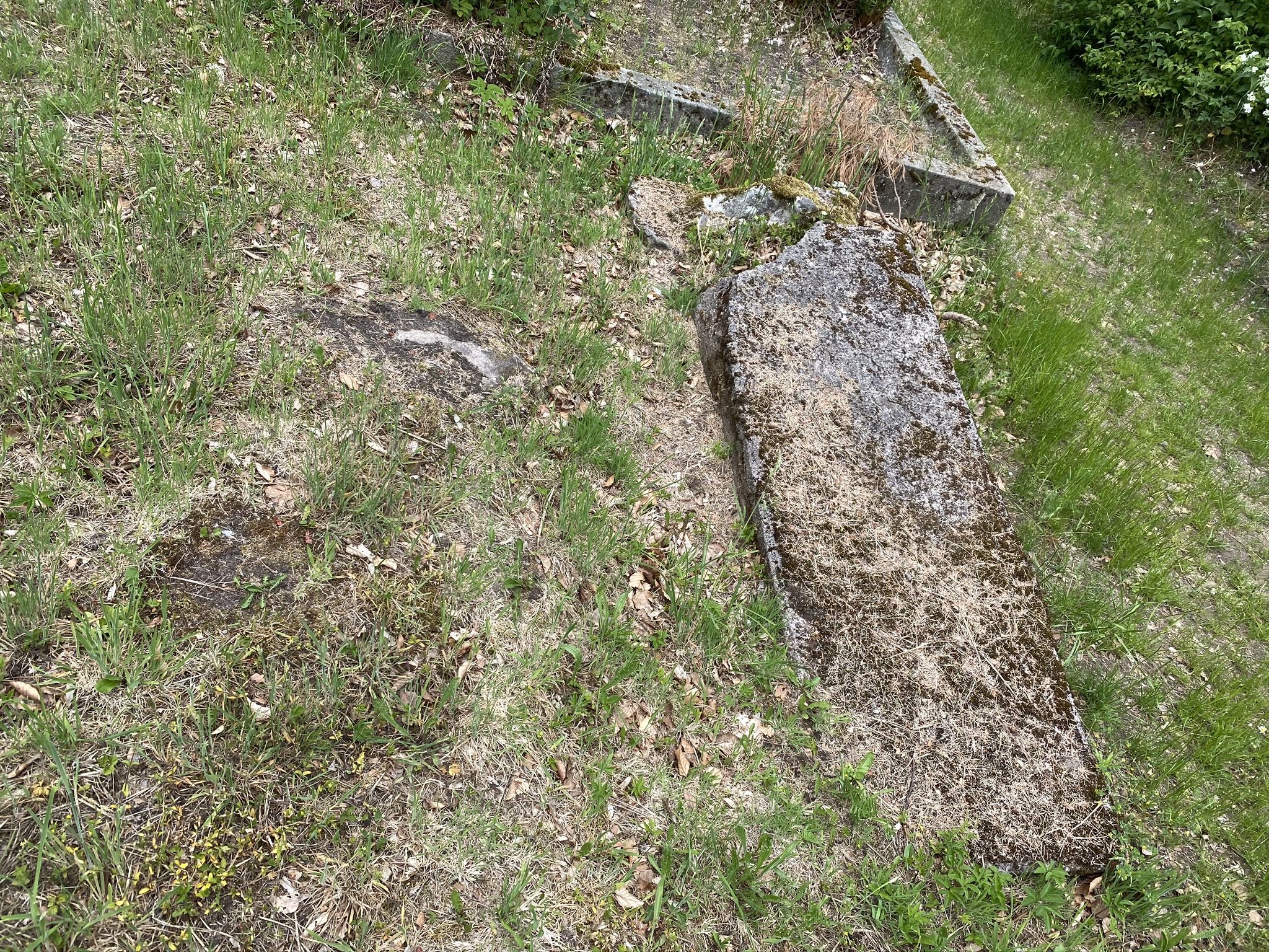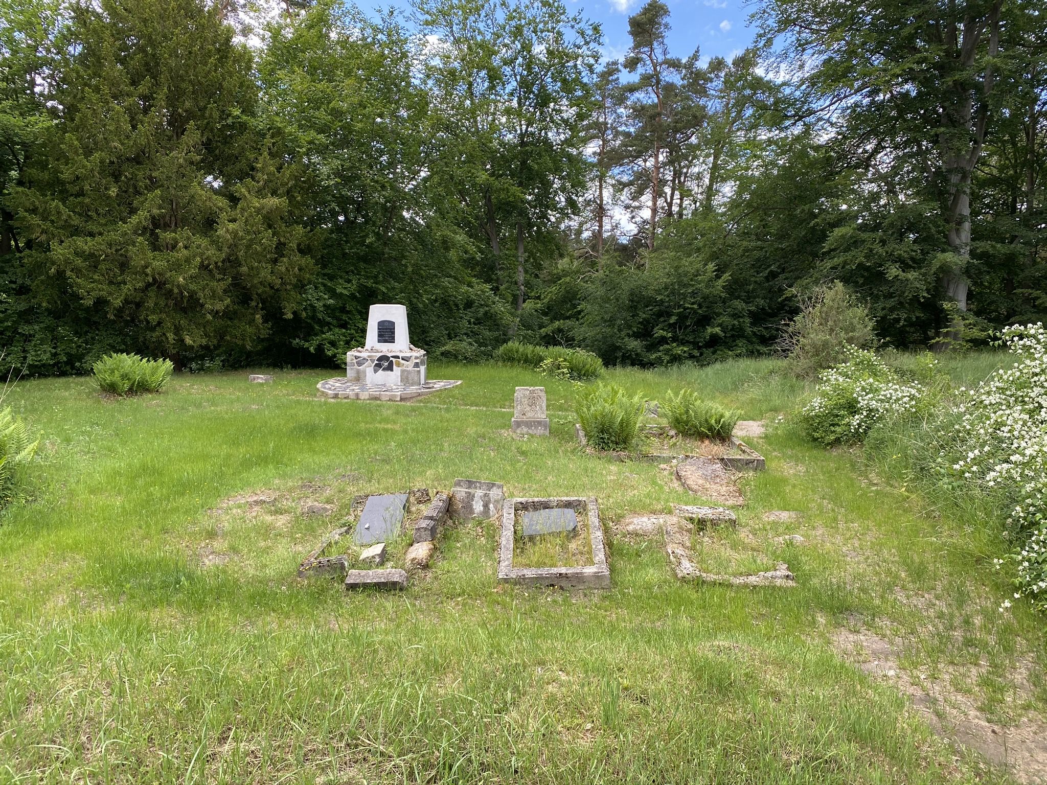 Friedhof verteilte Fragmente von Sockeln und Grabsteinen |