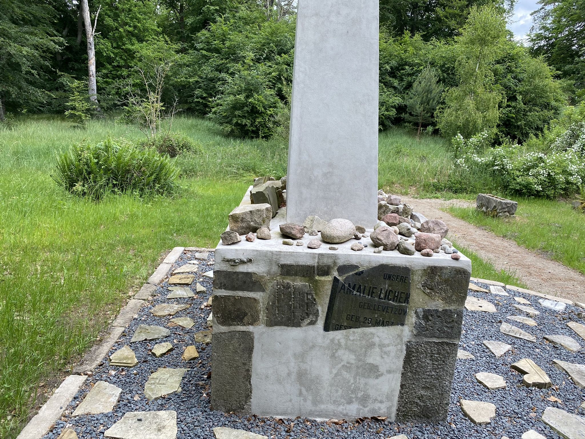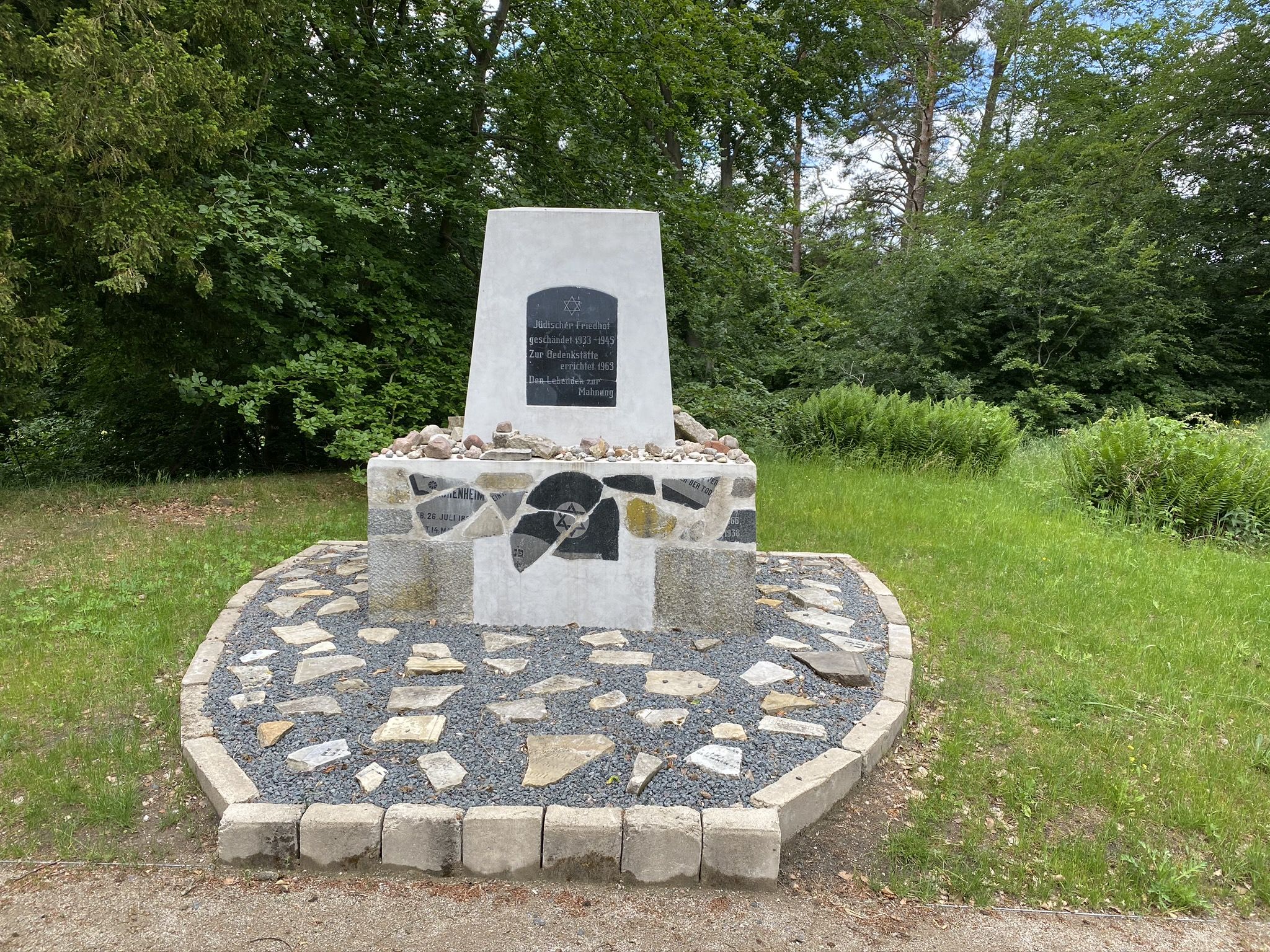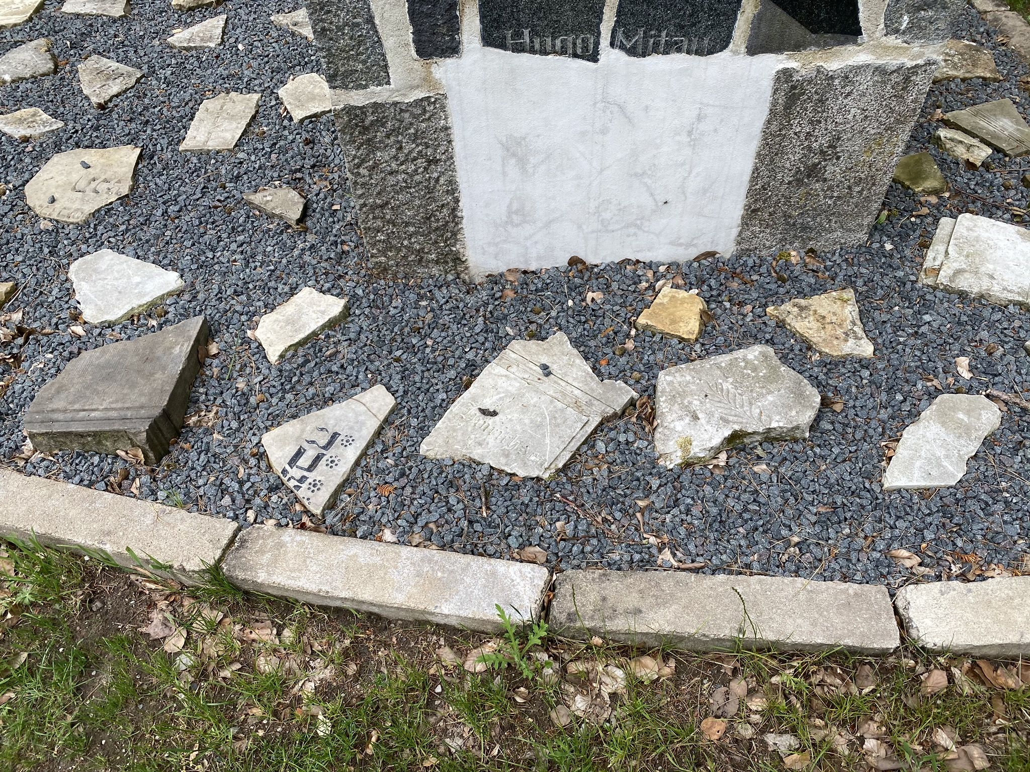 zentrale Denkmal mit der Aufschrift " Jüdischer Friedhof - geschändet