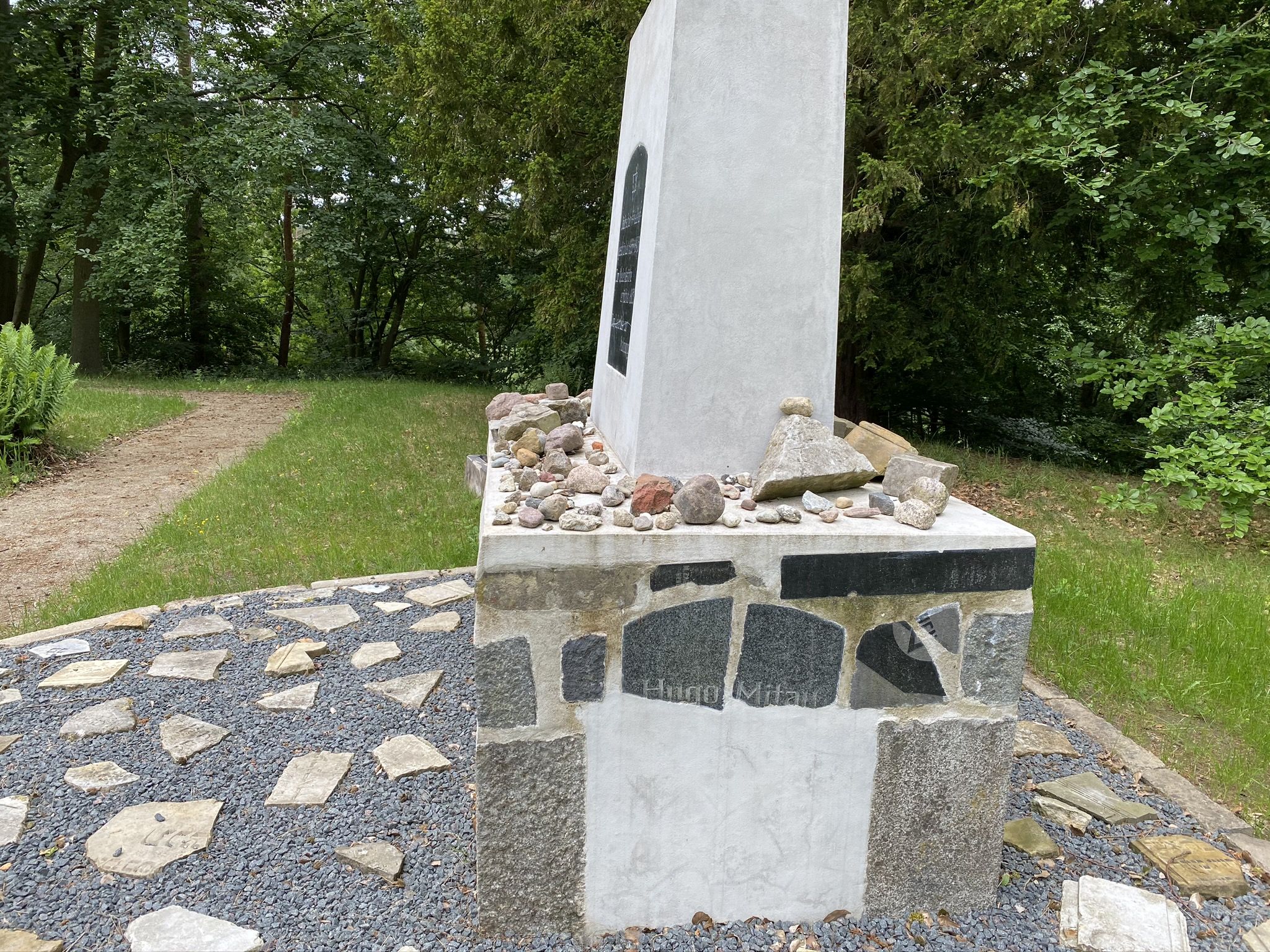 und eine Gedenkstätte angelegt. Der Gedenkstein erhebt sich auf einem Sockel